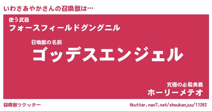 | 伝説のあだ名 | 『不死鳥の傭兵いわさあやか』 |