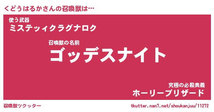 | 女子向けラノベタイトル風あだ名 | 『くどうはるか姫と円卓の騎士』 |