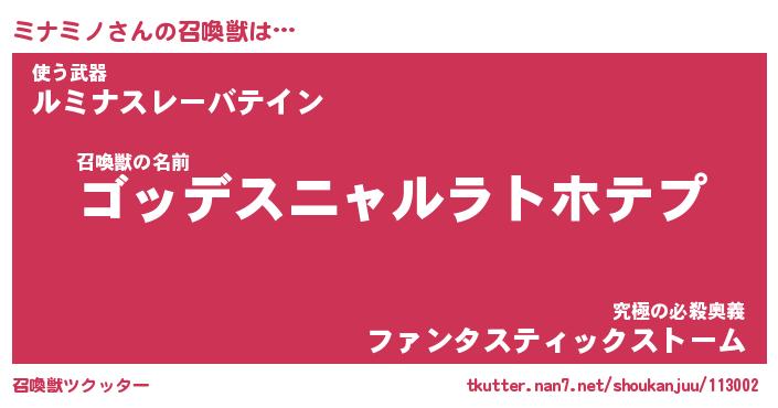 | ヒーロー風カッコイイあだ名 | 『スーパーミナミノ』『天弓騎士ミナ』 |