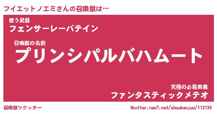 | 女子向けラノベタイトル風あだ名 | 『フイエットノエミ姫と円卓の騎士』 |
