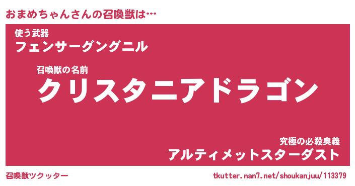 | 伝説のあだ名 | 『封印されし竜騎士おまめちゃん』 |