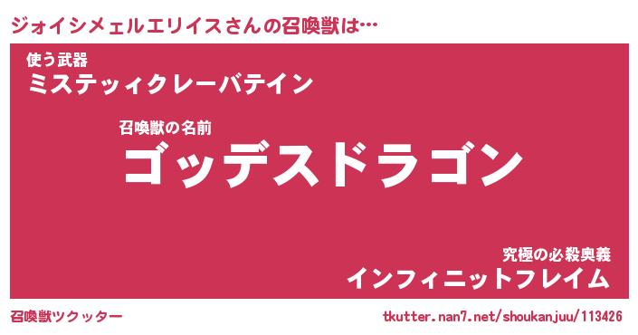 | 伝説のあだ名 | 『不死鳥の竜騎士ジォイシメェルエリイス』 |