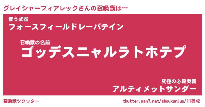 | 伝説のあだ名 | 『不死鳥のスナイパーグレイシャーフィアレック』 |