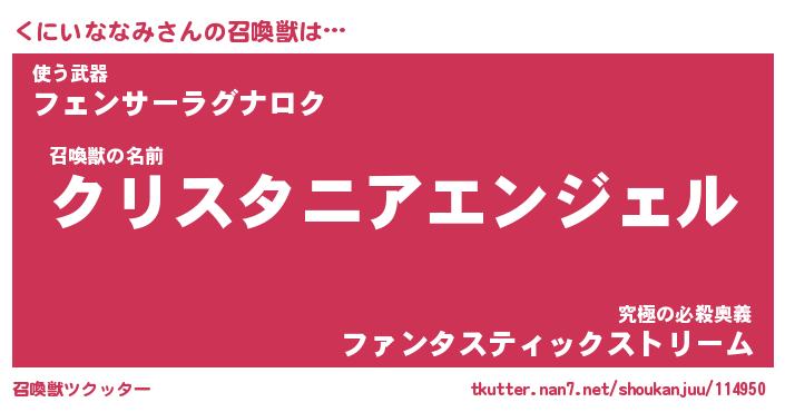 | ヒーロー風カッコイイあだ名 | 『スーパークニイナナミ』『炎刃騎士クニ』 |