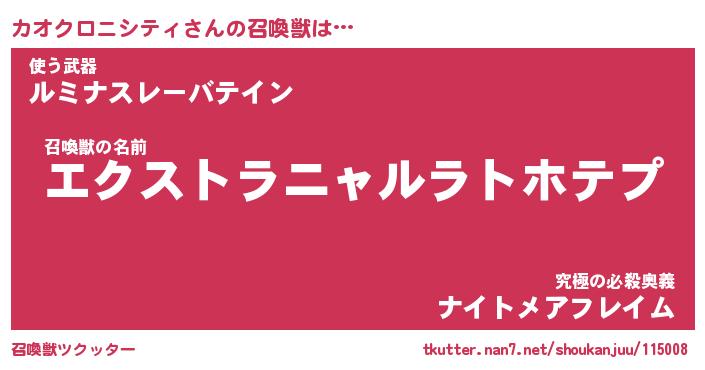 | 胡散臭い通販商品みたいなあだ名 | 『必ず成功する霊験あらたかなお札…その名も「カオクロニシティ」』 |