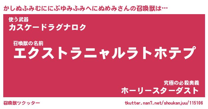 | ヒーロー風カッコイイあだ名 | 『スーパーカシヌフミムニニブユミフミヘニヌメミ』 |