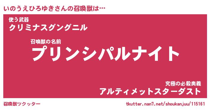 | 女子向けラノベタイトル風あだ名 | 『いのうえひろゆき姫と円卓の騎士』 |