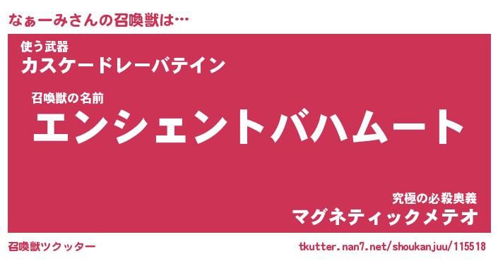 | ファンタジー風あだ名 | 『ナァフェル』『エターナルナァーミー』 |