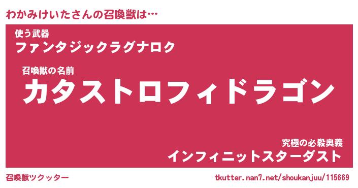 | 伝説のあだ名 | 『封印されし竜騎士わかみけいた』 |