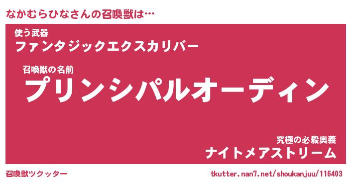 | ヒーロー風カッコイイあだ名 | 『スーパーナカムラヒナ』『魔戒騎士ナカ』 |