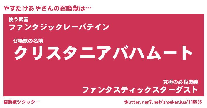 | 肩書あだ名 | 『やすたけあやCEO』『やすたけあや大統領』 |