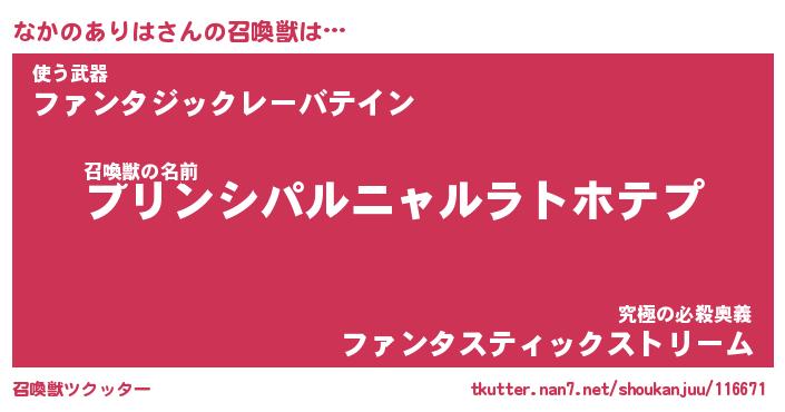 | ヒーロー風カッコイイあだ名 | 『スーパーナカノアリハ』『黄金騎士ナカ』 |