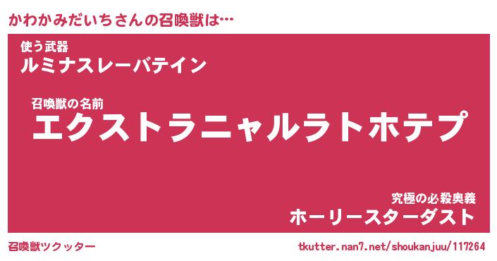 | ヒーロー風カッコイイあだ名 | 『スーパーカワカミダイチ』 |