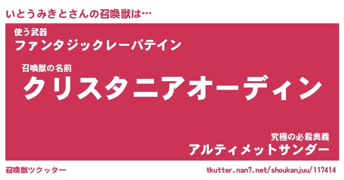 | ヒーロー風カッコイイあだ名 | 『スーパーイトウミキト』『魔戒騎士イト』 |