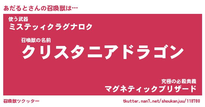 | 伝説のあだ名 | 『封印されし竜騎士あだると』 |