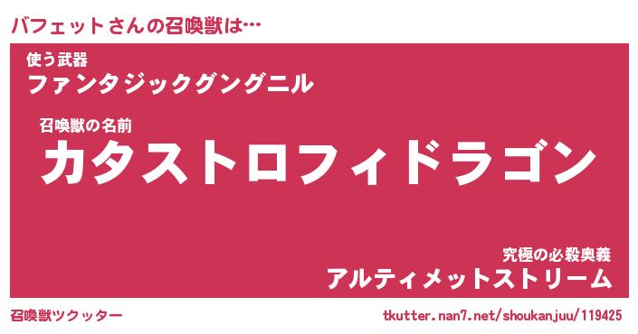 | ヒーロー風カッコイイあだ名 | 『スーパーバフェット』『天弓騎士バフ』 |