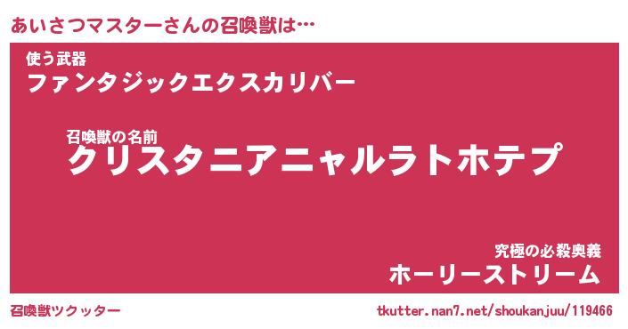 | ツイッター | あいさつマスターさんのツイッターID『dendenmushi_nyan』 |