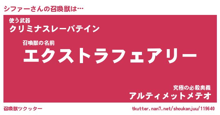 | 意味不明あだ名 | 『ペロリンシファー』『永久保存シファー』 |