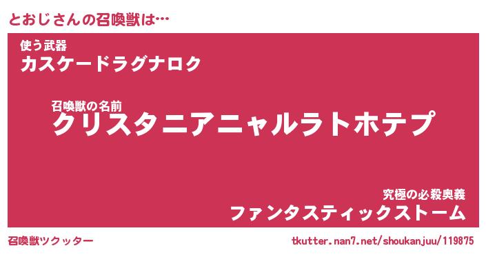 | ファンタジー風あだ名 | 『トオフェル』『エターナルトオジー』 |