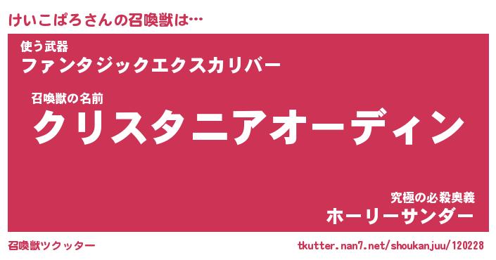 | ファンタジー風あだ名 | 『ケイフェル』『エターナルケイコパロー』 |