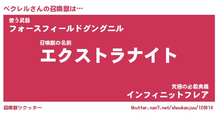 | ヒーロー風カッコイイあだ名 | 『スーパーベクレル』『幻影騎士ベク』 |