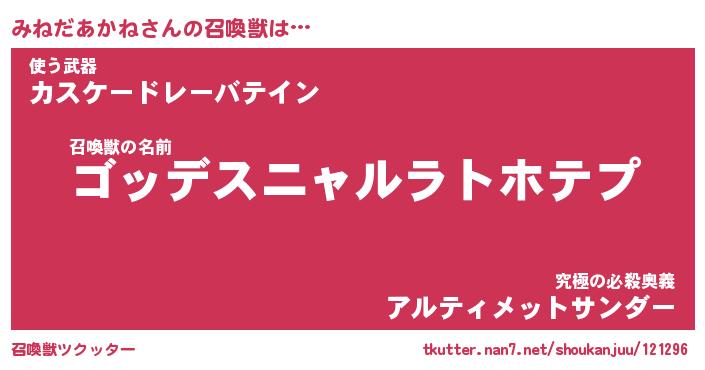 | 胡散臭い通販商品みたいなあだ名 | 『モテモテ間違いなし霊験あらたかなお札…その名も「みねだあかね」』 |