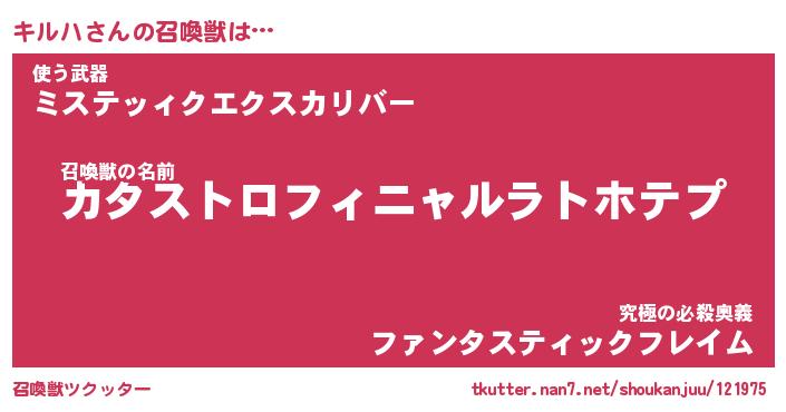 | ファンタジー風あだ名 | 『キルフェル』『エターナルキルハー』 |