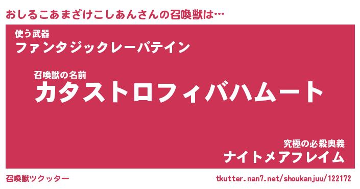 | 伝説のあだ名 | 『封印されし竜騎士おしるこあまざけこしあん』 |