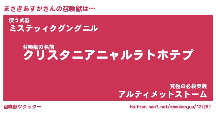 | 伝説のあだ名 | 『封印されしスナイパーまさきあすか』 |