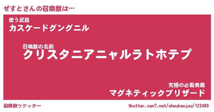 | ポケモン風あだ名 | 『ゼスチュウ』『ゼストダネ』 |