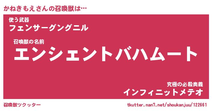 | ヒーロー風カッコイイあだ名 | 『スーパーカネキモエ』『幻影騎士カネ』 |