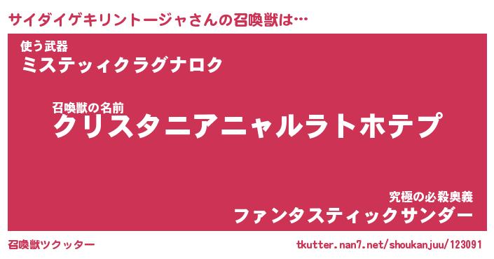 | ヒーロー風カッコイイあだ名 | 『スーパーサイダイゲキリントージャ』 |