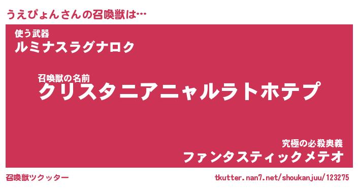 | ファンタジー風あだ名 | 『ウエフェル』『エターナルウエピョンー』 |