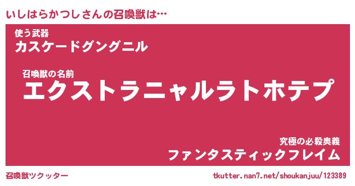 | ヒーロー風カッコイイあだ名 | 『スーパーイシハラカツシ』 |