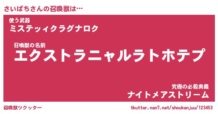 | 意味不明あだ名 | 『ペロリンさいぱち』『永久保存さいぱち』 |