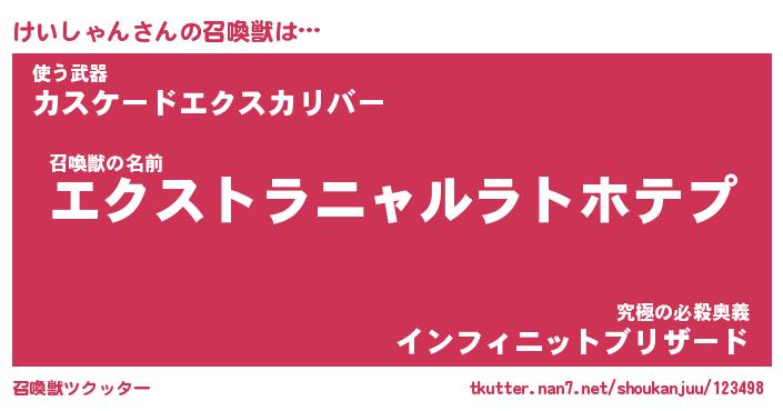 | 伝説のあだ名 | 『伝説のスナイパーけいしゃん』 |