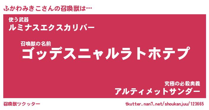 | ヒーロー風カッコイイあだ名 | 『スーパーフカワミキコ』『魔戒騎士フカ』 |