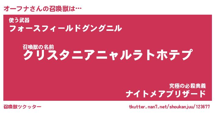 | ファンタジー風あだ名 | 『オーフェル』『エターナルオーフナー』 |