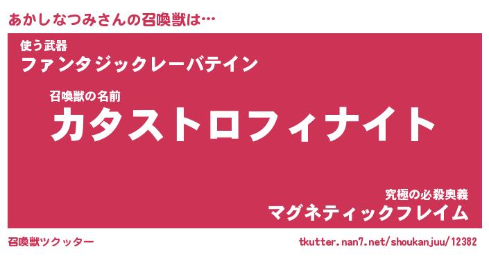 | 伝説のあだ名 | 『封印されしスナイパーあかしなつみ』 |