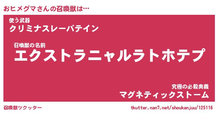 | ファンタジー風あだ名 | 『オヒフェル』『エターナルオヒメグマー』 |
