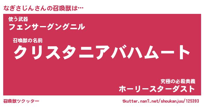 | ツイッター | なぎさじんさんのツイッターID『namakemono_star』 |