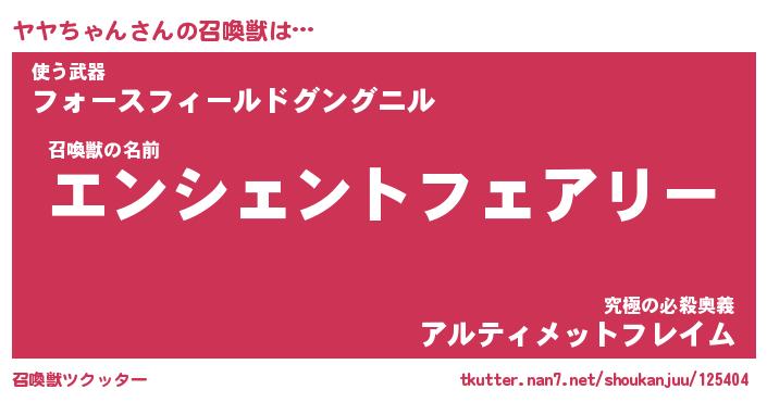 | ファンタジー風あだ名 | 『ヤヤフェル』『エターナルヤヤチャンー』 |