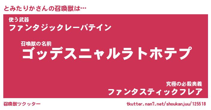 | ヒーロー風カッコイイあだ名 | 『スーパートミタリカ』『天弓騎士トミ』 |