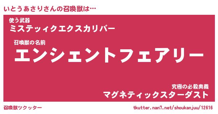 | ヒーロー風カッコイイあだ名 | 『スーパーイトウアサリ』『炎刃騎士イト』 |