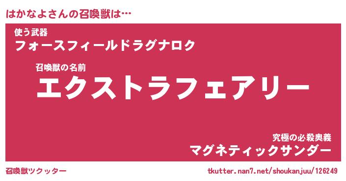 | ファンタジー風あだ名 | 『ハカフェル』『エターナルハカナヨー』 |