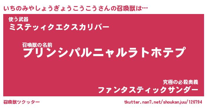 | 胡散臭い通販商品みたいなあだ名 | 『モテモテ間違いなし霊験あらたかなお札…その名も「いちのみやしょうぎょうこうこう」』 |