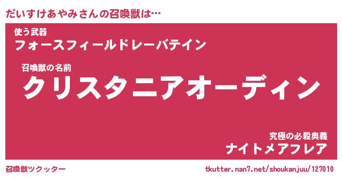 | 伝説のあだ名 | 『封印されしスナイパーだいすけあやみ』 |