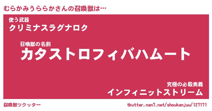 | ヒーロー風カッコイイあだ名 | 『スーパームラカミウララカ』 |