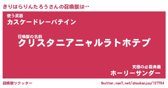 | 伝説のあだ名 | 『封印されしスナイパーきりはらりんたろう』 |
