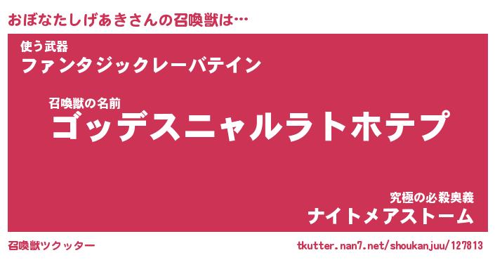 | 胡散臭い通販商品みたいなあだ名 | 『モテモテ間違いなし霊験あらたかなお札…その名も「おぼなたしげあき」』 |